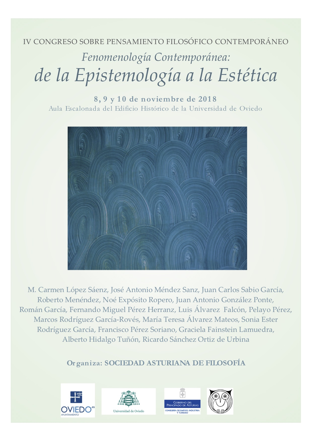 La SAF organiza ahora el IV Congreso sobre Pensamiento Filosófico Contemporáneo: “Fenomenología Contemporánea: de la Epistemología a la Estética”, congreso que tiene previsto celebrar durante los días 8, 9 10 de noviembre de 2018 en el Edificio Histórico de la Universidad de Oviedo.